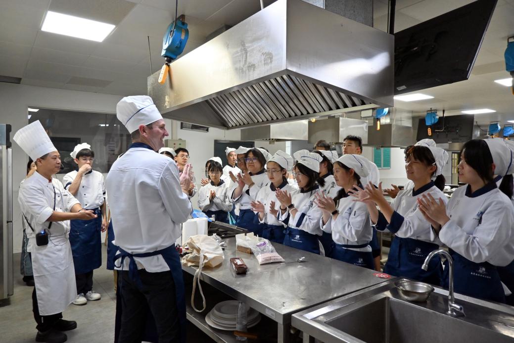 课程聚焦“专业技能实训、沉浸式英语交流、国际美食文化感知”三大维度,两位外教以专业且亲和的教学方式,从食材处理的精准把控到摆盘美学的色彩搭配,为学生带来了国际一流的西餐教学体验。